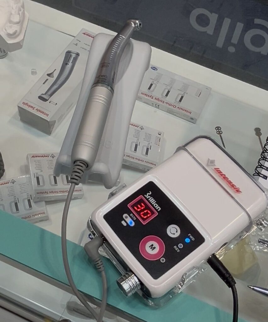 Los sistemas de stripping dental de Intensiv también captaron la atención durante la feria. Su contraángulo oscilante permite hacer reducciones interproximales de forma controlada y precisa, algo muy útil en tratamientos de ortodoncia.