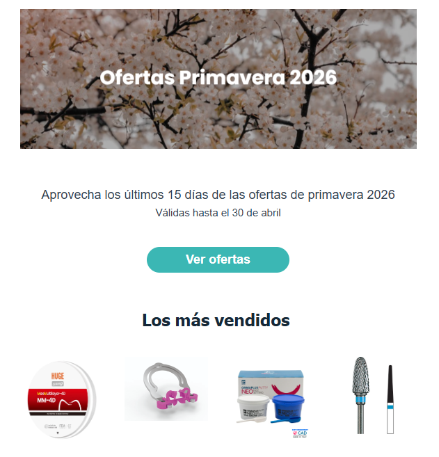 En cada envío encontrarás novedades de producto, formaciones, ofertas y contenidos del sector dental con aplicación directa en el trabajo.